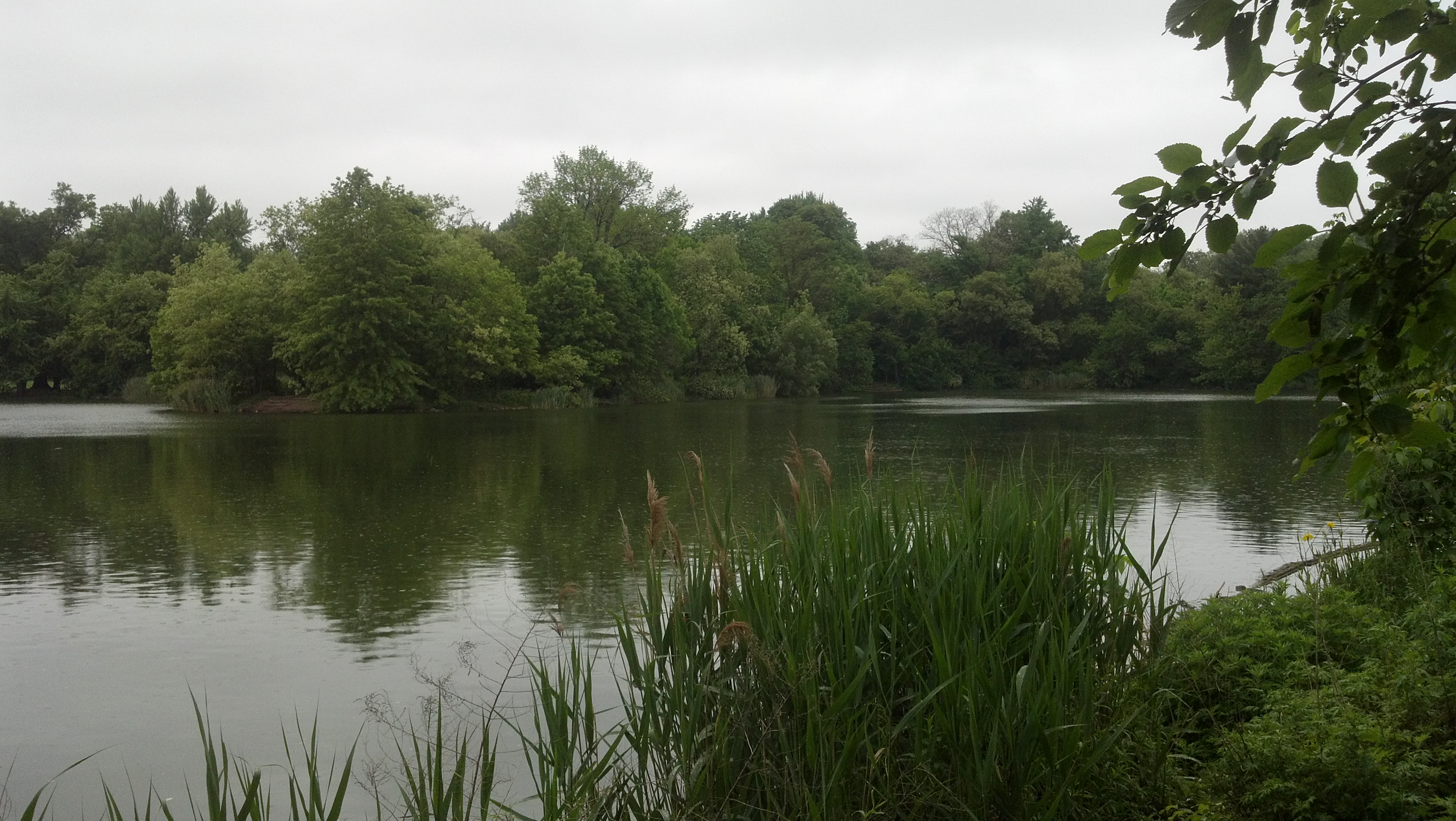 Once the rain turned up a notch after the noon hour, the bite declined, eventually ending. Sustained shivers started to shimmy up and down my back. Even the birds silenced. The only sound was the sizzle of the rain impacting on the lake and my mind’s voice encouraging departure. The afternoon was young, but seven fish caught and numerous near misses had given my first tenkara adventure in Brooklyn a solid B . . .