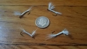Size 12 Sucker Spawn tied with white chenille that by pure coincidence resembles a cheesy snack found along the bank!