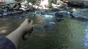 Tenkara technique is well-suited for upstream presentation in close quarters. (photo taken 06 24 2012)